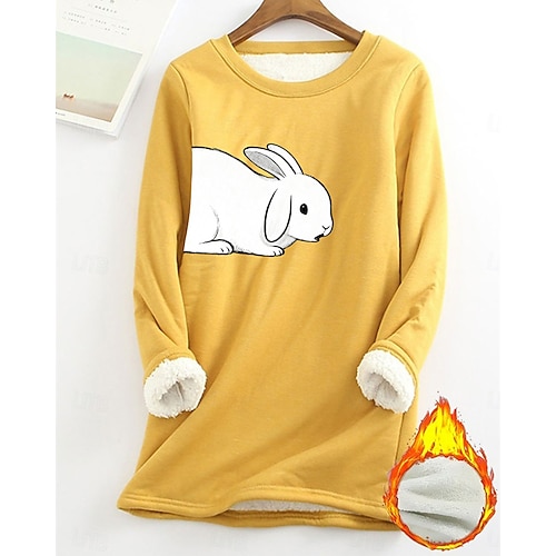 Per donna Felpa Pullover Grafico Animale Moda Essenziale Casual Manica Lunga Girocollo Top Regolari Streetwear Abbigliamento Quotidiano Casuale Stampato Foderato in pile Nero Giallo Rosa Rosa scuro