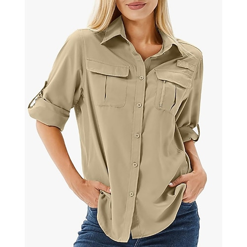 Per donna Camicia Blusa Semplice Elegante Vintage Tropicale Manica Lunga Colletto a Camicia Top Regolari Ferie Uscire Bottoni Nero Bianco Rosa Azzurro cielo Cachi Estate Primavera Autunno