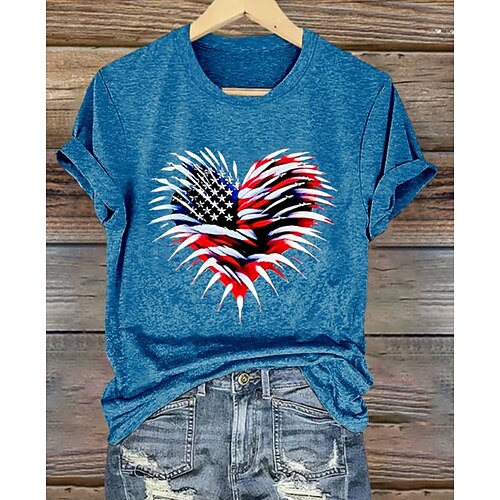 Giorno dell'Indipendenza Americana Per donna Maglietta Grafico Bandiera Americana Vintage Elegante Classico Manica Corta Girocollo Top Regolari Quotidiano Weekend Stampato Blu Nero Bianco Rosso Verde