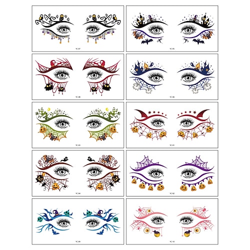 tatuaggi per il trucco degli occhi agli angoli di Halloween – 10 tatuaggi temporanei premium per il viso per le feste decorazioni natalizie