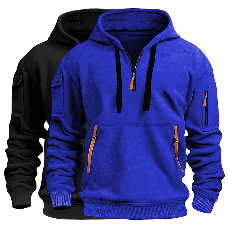 Men's Hoodie Quarter Zip Hoodie Tactical Hoodie KhakiBlack Light GrayBlue Dark GrayBlack WhiteLight Gray WineBlack Hooded Plain Zipper Sports Outdoor Casual Daily Streetwear Cool Sportswear