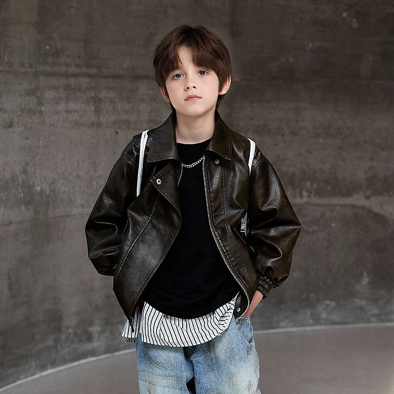 Kids Girls' Black Leather Jacket Fleece Jacket Jacket Solid Color Fashion Zipper Pocket Waterproof Keep Warm Windproof Outdoor Coat Outerwear 4-12 Years Fall Black
