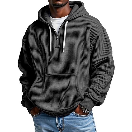 Per uomo Felpa con cappuccio Felpa con cappuccio a nido d'ape Felpa con cappuccio e zip corta Nero Verde chiaro Vino Verde militare Blu Reale Con Cappuccio Semplice Coulisse Tasca Quotidiano Sport