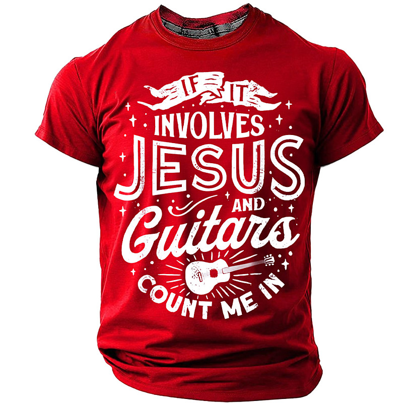 If It Involves Jesus And Guitars Count Me In T Shirt Christian Guitarist Gift Worship Leader Music Lover Faith Graphic Grey Tee Men Clothing Apparel S M L XL XXL XXXL
