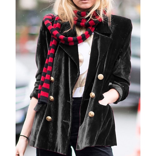 Per donna Blazer Blazer di velluto Confortevole Tasca Bottoni Elegante Moda Semplice Feste Festa / Sera Casuale Regolare Lungo Collo ripiegato Vestibilità regolare Manica Lunga Capispalla Nero Giallo