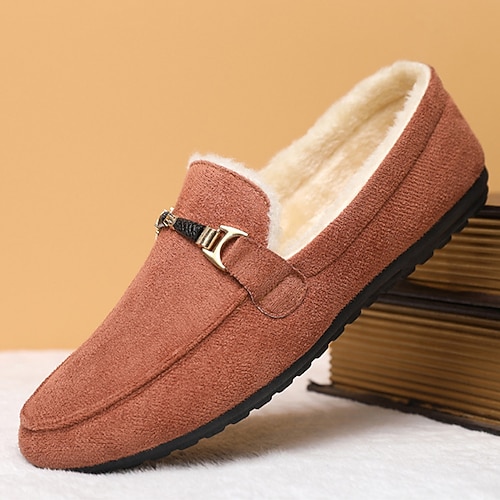 scarpe slip-on marroni da uomo con fodera in pelliccia: scarpe calde e comode per il freddo, abbigliamento casual e comfort