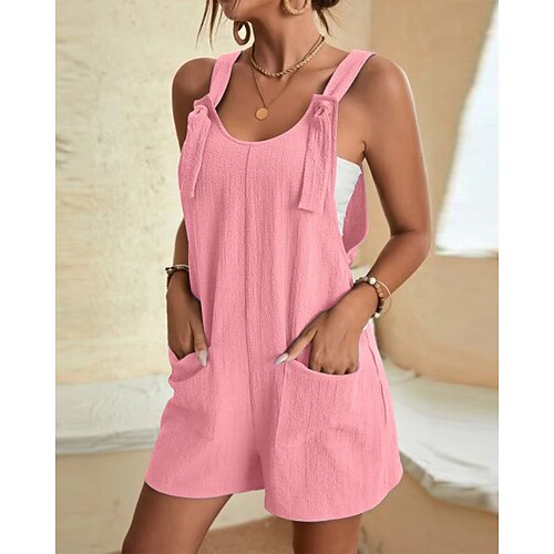 Per donna Normale Pagliaccetto Streetwear Tinta unica Senza Maniche Collo a U Tasca Uscire Weekend Vestibilità regolare Nero Verde chiaro Rosa Estate