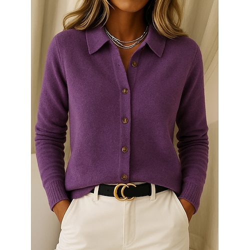 Per donna Felpa Casual Tinta unica Colletto a Camicia Bottoni Manica Lunga Top Regolari Maglia Casa Quotidiano Ferie Rosso Viola Autunno Inverno