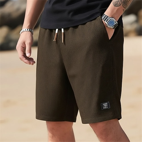 Per uomo Pantaloncini Waffle Pantaloncini Estivi Shorts da Spiaggia Pantaloncini casual Pantaloncini strutturati Coulisse Elastico in vita Tinta unica Comodità Lunghezza al ginocchio Quotidiano