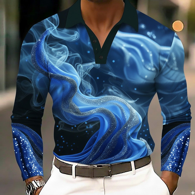 Men's Abstract Geometic Polo Long Sleeve Polo Shirts Lapel Casual Outdoor Street Athleisure Daily Wear 3D Print Buttons Spring Fall Winter Blue Gold Green