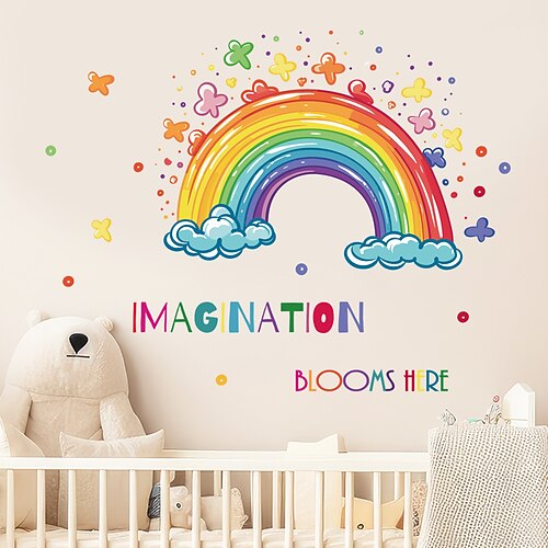 adesivo da parete con bolle arcobaleno dei cartoni animati, design di nuvole e bolle, decalcomania da parete rimovibile per cameretta dei bambini, camera da letto, soggiorno, divano, sfondo,