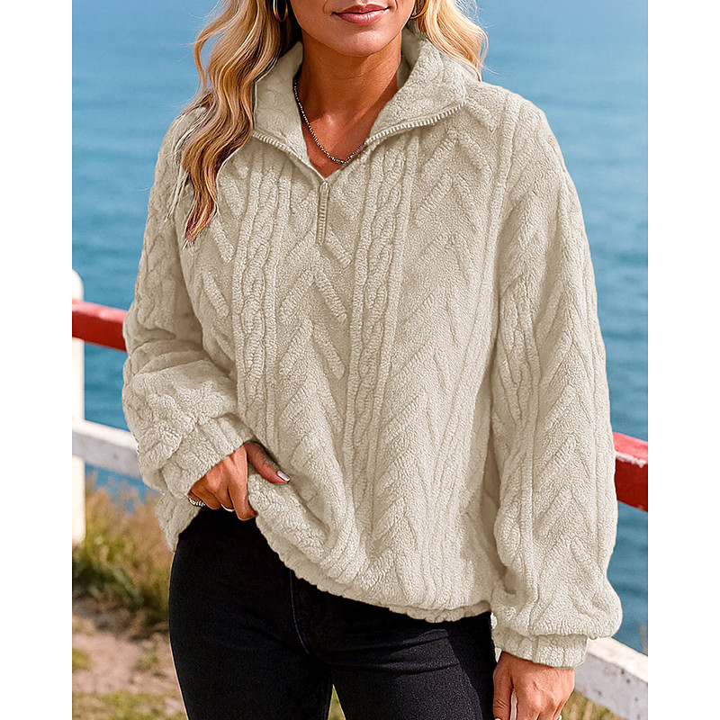 Women's Pullover Sweatshirt Plain Casual Long Sleeve Lapel Regular Tops Street Holiday Zipper claret Navy Black White Dark Grey Fall
