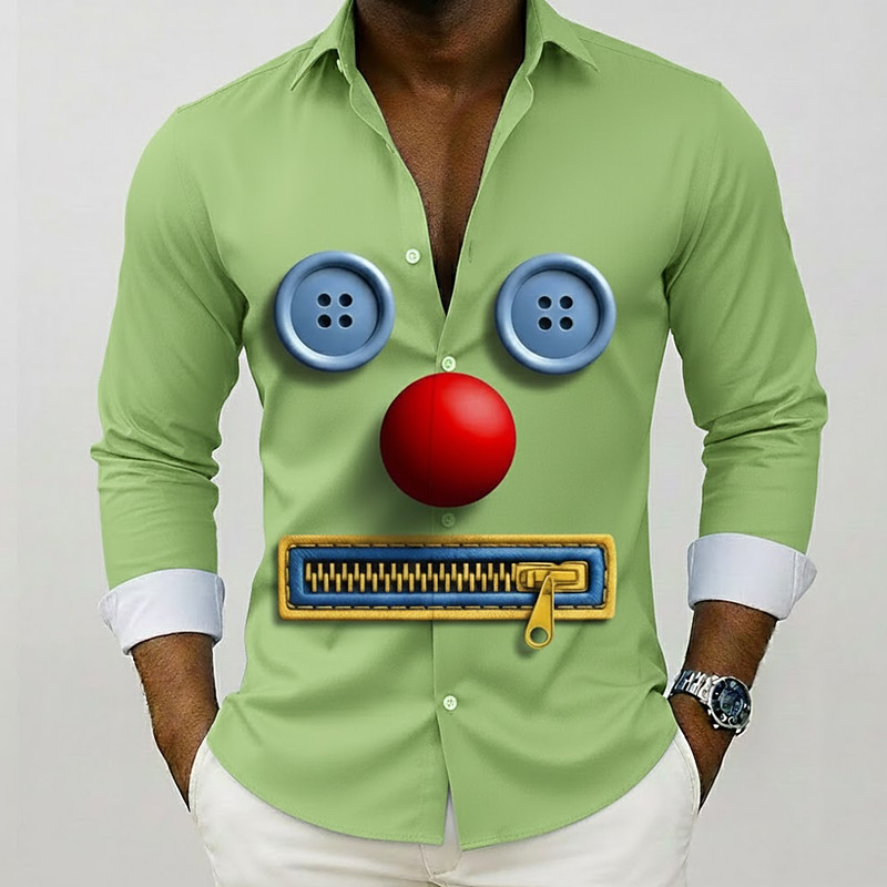 Men's Optical Illusion Button Zipper Face Shirt Button Up Shirt Long Sleeve Funny Outdoor Dailywear Spring Fall Turndown 3D Print Collared Shirts Blue Purple Green