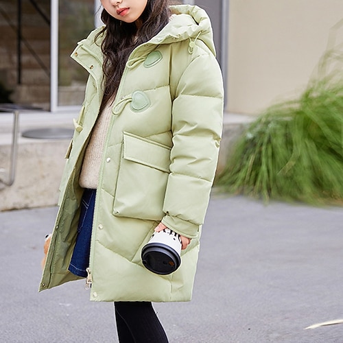 Per donna Parka Antivento Tenere al caldo Cerniera Bottoni Tasche A cordoncino Di tendenza Moderno Informale Stile di strada Tinta unica Esterno Strada Da tutti i giorni Per uscire Cerniera Lungo