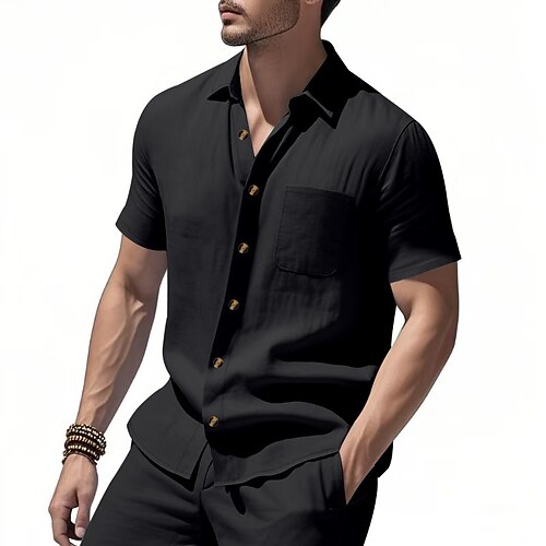 Per uomo Camicia Camicia Estiva Camicia casual Camicia da Spiaggia Camicia con Bottoni Nero Bianco Verde militare Albicocca Grigio Manica Corta Semplice Bavero Quotidiano Vacanza Tasca Abbigliamento