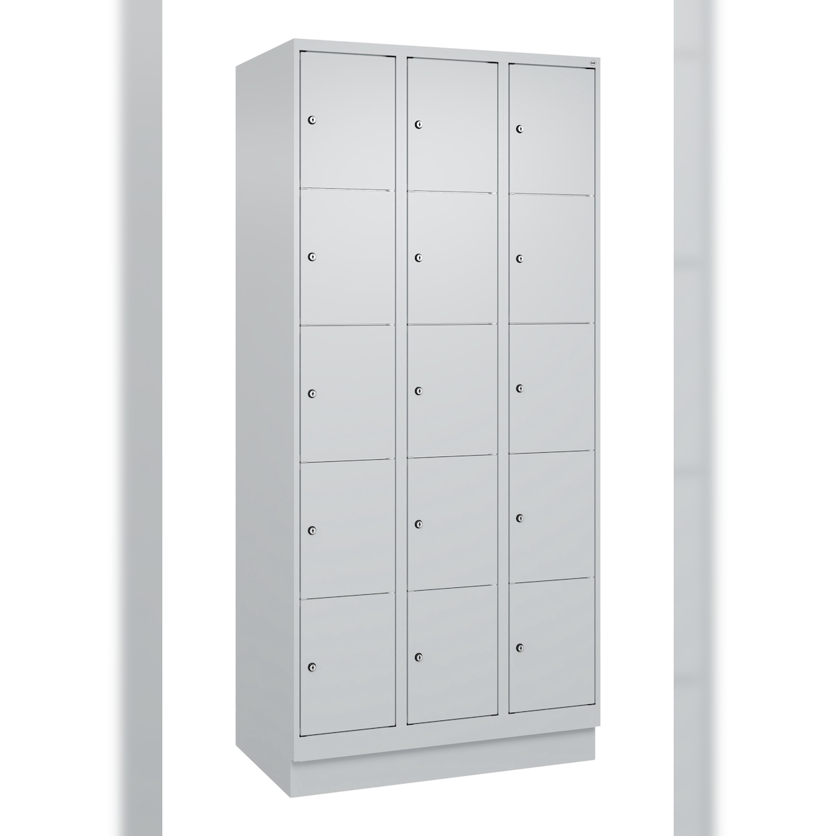 C+P Schließfachschränke Classic PLUS, Sockel, 15 Abteile, HxBxT 195x90x50cm, Zylinderschloss, Hellgrau/Hellgrau von PROREGAL