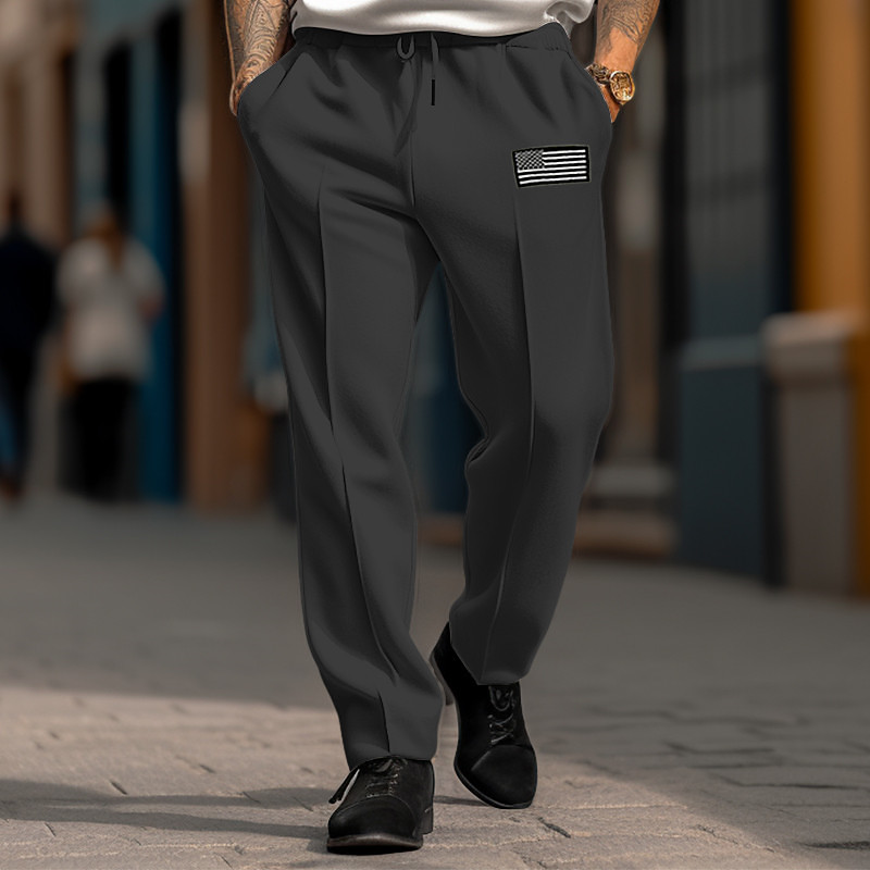 Men's Sweatpants Joggers Trousers Straight Leg Sweatpants Pleated Pants Drawstring Elastic Waist Straight Leg National Flag Comfort Breathable Casual Daily Holiday Sports Fashion Pumpkin Black