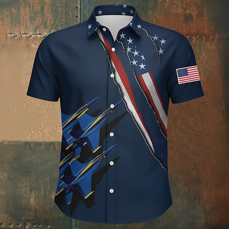 Men's US Flag Patriotic America's 250th Anniversary Shirt Button Up Shirt Short Sleeve Vintage Retro Outdoor Holiday Summer Spring Turndown 3D Print Collared Shirts White Army Green Dark Blue
