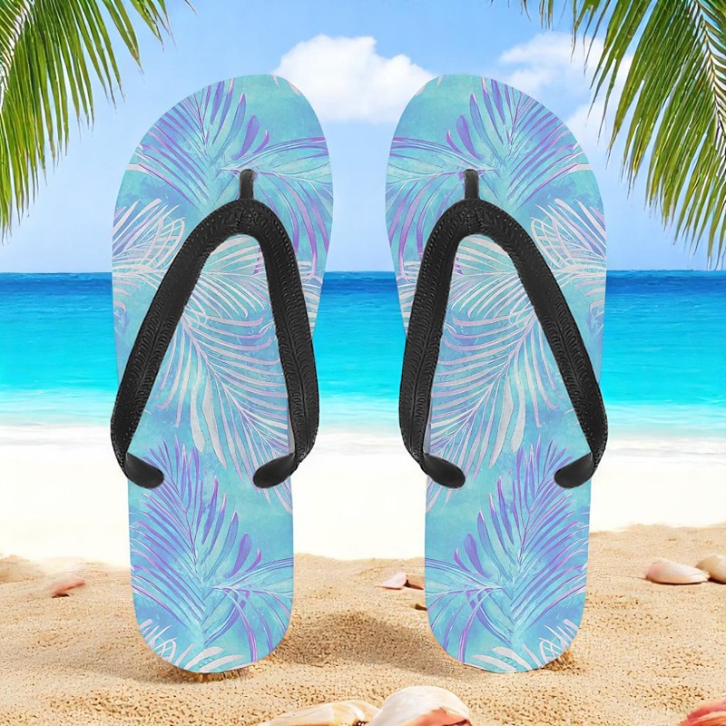 Men's Blue Leaf Printed Flip Flops – Tropical Stylish Style for Beach Vacations, Island Hopping Beachside Dinners