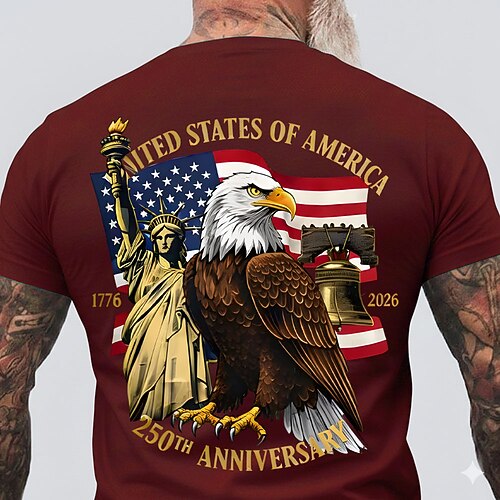 4 luglio 2026 250° Giorno della Memoria Maglietta a Maniche Corte con Stampa 3D Bandiera Statunitense Collo Giro Uomo Stile Quotidiano