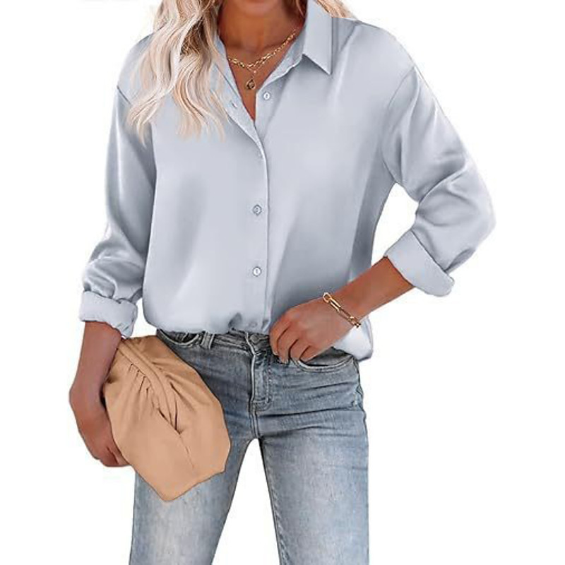 Women's Shirt Elegant Satin Blouse Plain Elegant Stylish Long Sleeve Shirt Collar Regular Tops Holiday Going out Buttons Black Wine Emerald Green Purple Light Grey Summer Spring Fall