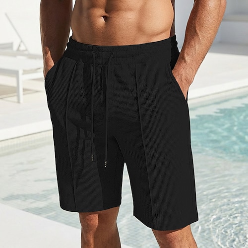 Herren Waffel-Shorts Shorts Sommershorts Freizeitshorts Kordelzug Tasche Elastischer Bund Einfach Komfort Atmungsaktiv Kurz Outdoor Strand Urlaub Sport Lässig Schwarz Weiß Mikroelastisch