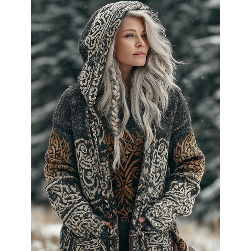 Viking Boho Women's Cardigan Vintage Daily Ethnic Style Geometric Color Gradient Ribbed Hooded Pocket Buttons Print Long Sleeve Long Tops Knit Outdoor Weekend Yellow Blue Fall Winter