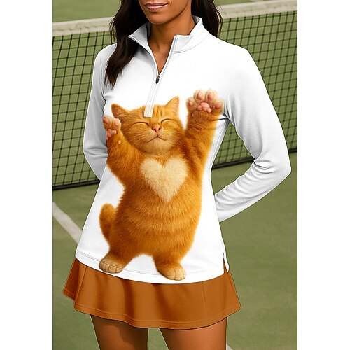 Per donna Gatto Top Maglietta Maglietta sportiva Polo da golf Manica Lunga Cerniera Floreale UPF50 Resistente ai Raggi UV Alta elasticità Traspirante Pallavolo Tennis Golf Collo Alto Collo alla