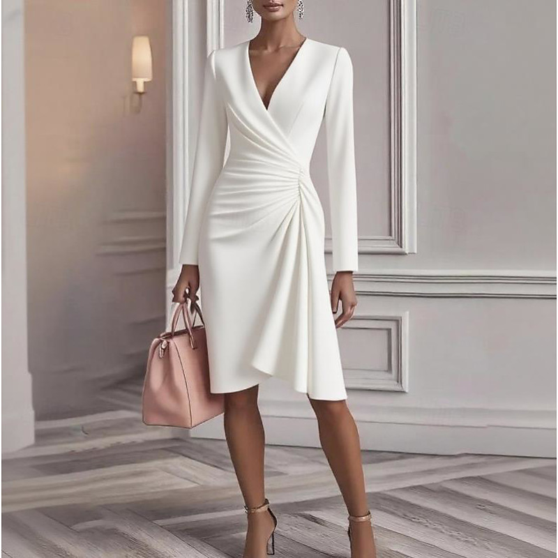 Women's Midi Dress Satin Dress Party Dress Sheath Dress Wrap Dress Elegant Modern Evening Party Party Special Occasion Regular Fit Plain Long Sleeve V Neck White Pink Wine Khaki Spring Fall