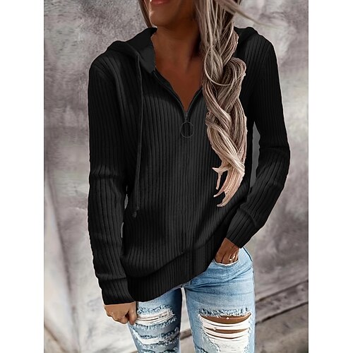 Per donna Felpa Casual Morbido Colore Puro A Coste Con Cappuccio Lavorato a maglia Manica Lunga Top Regolari Maglia All'aperto Quotidiano Weekend Nero Bianco Autunno Inverno