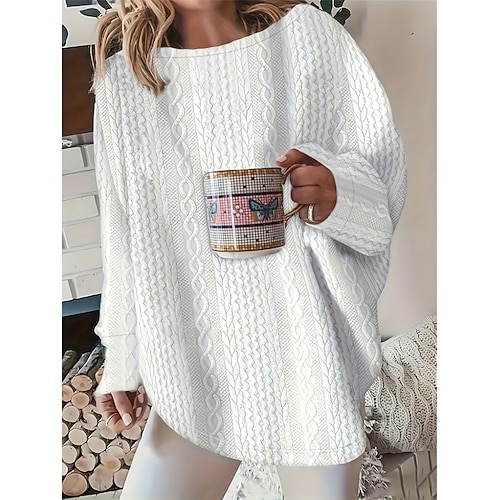 Per donna Felpa Casual Morbido Colore Puro A Coste Girocollo Lavorato a maglia Manica Lunga Top Regolari Maglia All'aperto Quotidiano Weekend Nero Bianco Autunno Inverno