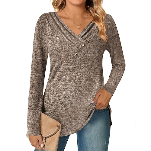 Per donna Blusa Tinta unica Elegante Essenziale Casual Manica Lunga Scollo a V Top Regolari Quotidiano Bottoni Nero Marrone Albicocca Azzurro Primavera Autunno