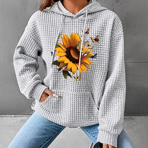 Per donna Felpe con cappuccio Floreale Moda Streetwear Casual Manica Lunga Con Cappuccio Top Regolari Streetwear Abbigliamento Quotidiano Tasca Stampato Nero Cachi Grigio Autunno Inverno