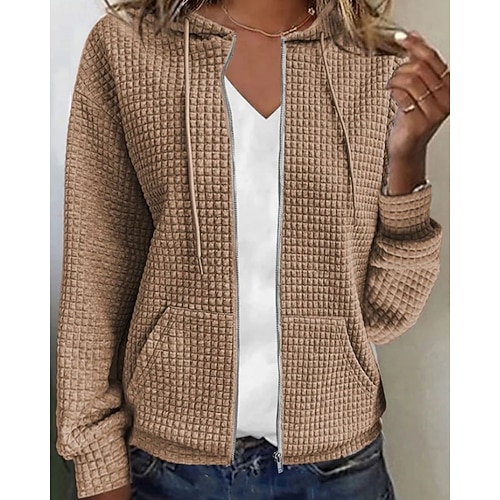 Per donna Giacche strutturate Felpe con cappuccio Semplice Streetwear Moderno Casual Manica Lunga Con Cappuccio Top Regolari Streetwear Abbigliamento Quotidiano Coulisse Tasca Frontale Blu Nero