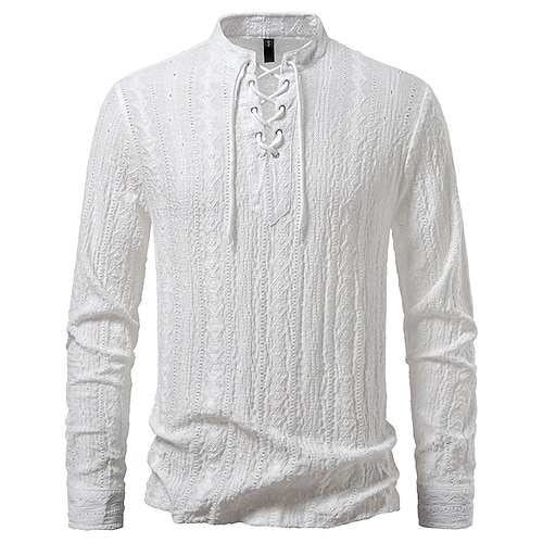 Per uomo Maglietta Camicia a Maniche Lunghe Manica Lunga Collo alla coreana Primavera Autunno Semplice Moda Designer Essenziale Allacciato Vacanza Streetwear Uscire Nero Bianco Maglietta Top per Uomo