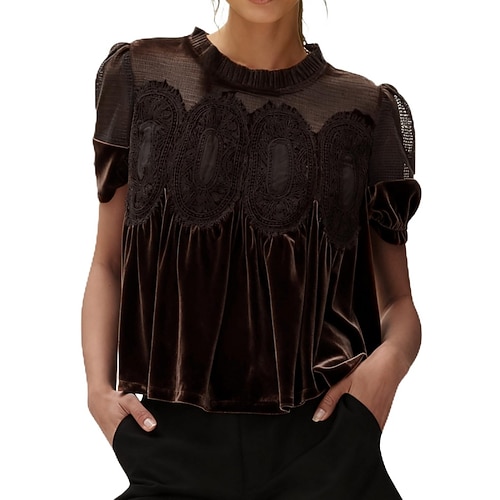 Per donna Velluto Blusa Tinta unica Elegante Manica Corta Girocollo Top Regolari Quotidiano Ferie Uscire Rete Blu Nero Vino Verde militare Arancione Estate Primavera