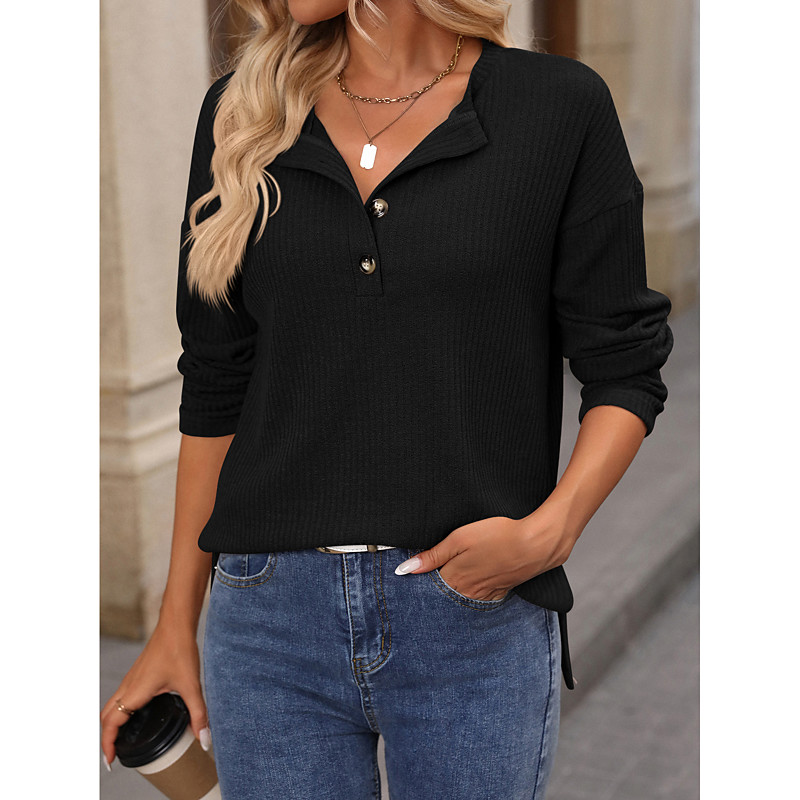 Women's Shirt Blouse Solid Color Stylish Casual Long Sleeve V Neck Regular Tops Daily Buttons Black Pink Army Green Orange Khaki Spring Fall