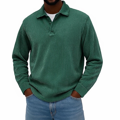 Per uomo Camicia di Velluto a Coste Testurizzato Casuale Sportivo Bavero Manica Lunga Moda Essenziale Blocco di colori Bottoni Caldo Autunno Primavera Autunno Vestibilità regolare Nero Blu scuro