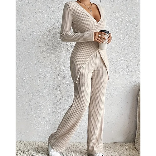 Per donna Elegante Moda Streetwear Blusa Set di Pantaloni Bolero Top Manica Lunga Scollo a V Tinta unica Casuale Quotidiano All'aperto Nero Cachi Azzurro Primavera Vestibilità regolare