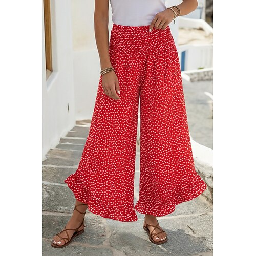 Per donna Gamba larga Chinos Moda Streetwear Lunghezza intera Vita Alta A Pois Tasca Fascia Elastica Stampato Comodo Morbido Confortevole Micro-elastico All'aperto Streetwear Nero Rosso Verde