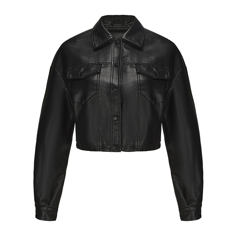 Women's Faux Leather Jacket Biker Jacket Comfortable Pocket Buttons Fashion Street Style Plain Outdoor Casual Daily Short Turndown Regular Fit Long Sleeve Outerwear Black Red Camel Spring Fall
