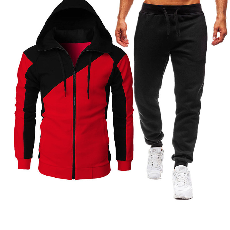 Men's Hoodie Tracksuit Zip Hoodie Sweatshirt Sweat Jacket Wine Red Black Red Blue Light Grey Hooded Color Block Patchwork Zipper Sports Outdoor Cool Casual Essential Winter Fall Winter Clothing