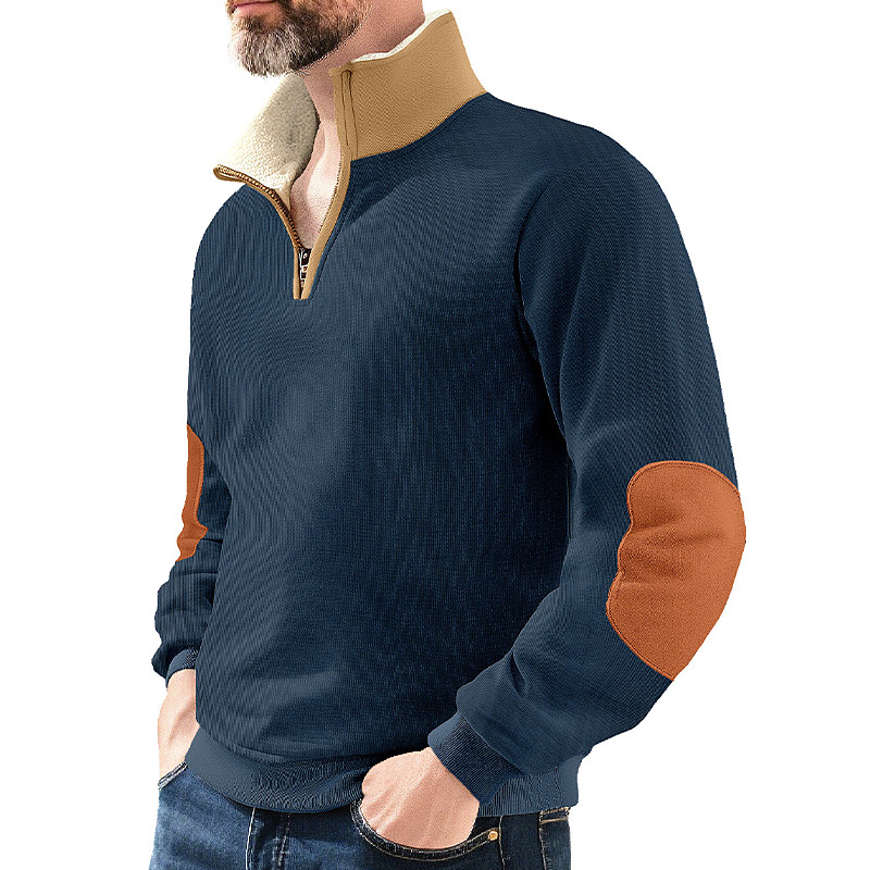 Men's Sweatshirt Corduroy Pullover Quarter Zip Sweatshirt Black Light Green Burgundy Navy Blue Dark Green Standing Collar Plain Textured Sports Outdoor Casual Daily Streetwear Cool Sportswear
