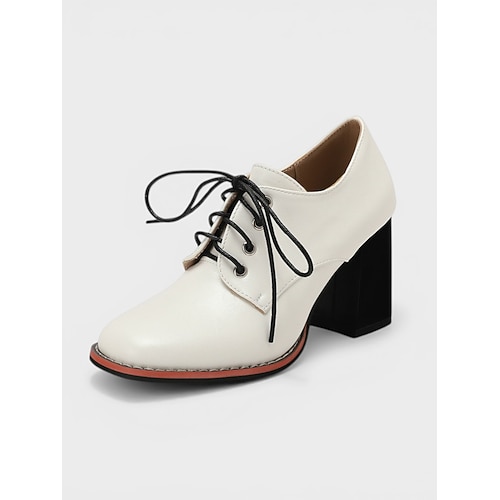 Scarpe Oxford da donna vintage marroni con tacco alto - classiche scarpe con tacco a blocco e punta a coda di rondine, allacciate e con dettagli brogue, perfette per l'ufficio, la scuola e tutti i