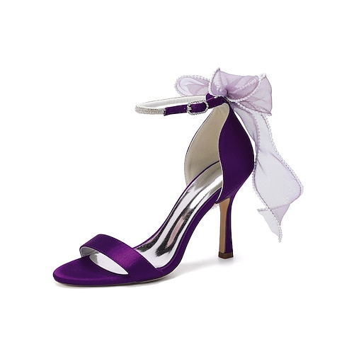 sandali da donna con tacco alto, plateau e cinturino alla caviglia con perle, in raso viola - scarpe da festa glamour con punta aperta, per serate, matrimoni e cocktail