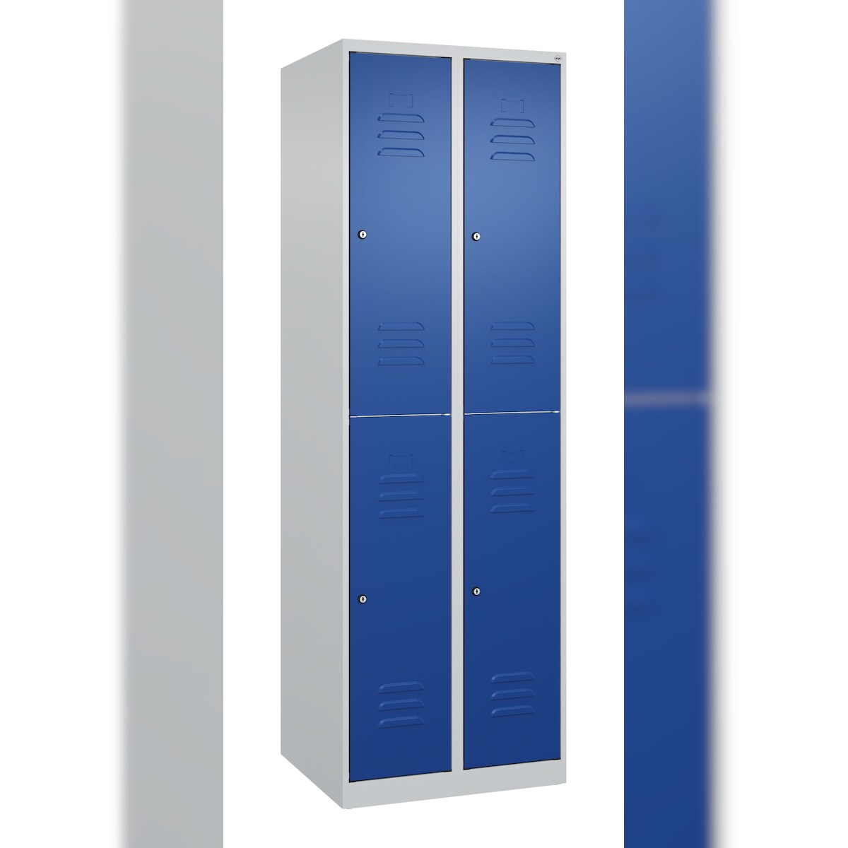 C+P Spind Classic PLUS, 4 Abteile, HxBxT 185x60x50cm, Zylinderschloss, Hellgrau/Enzianblau von PROREGAL