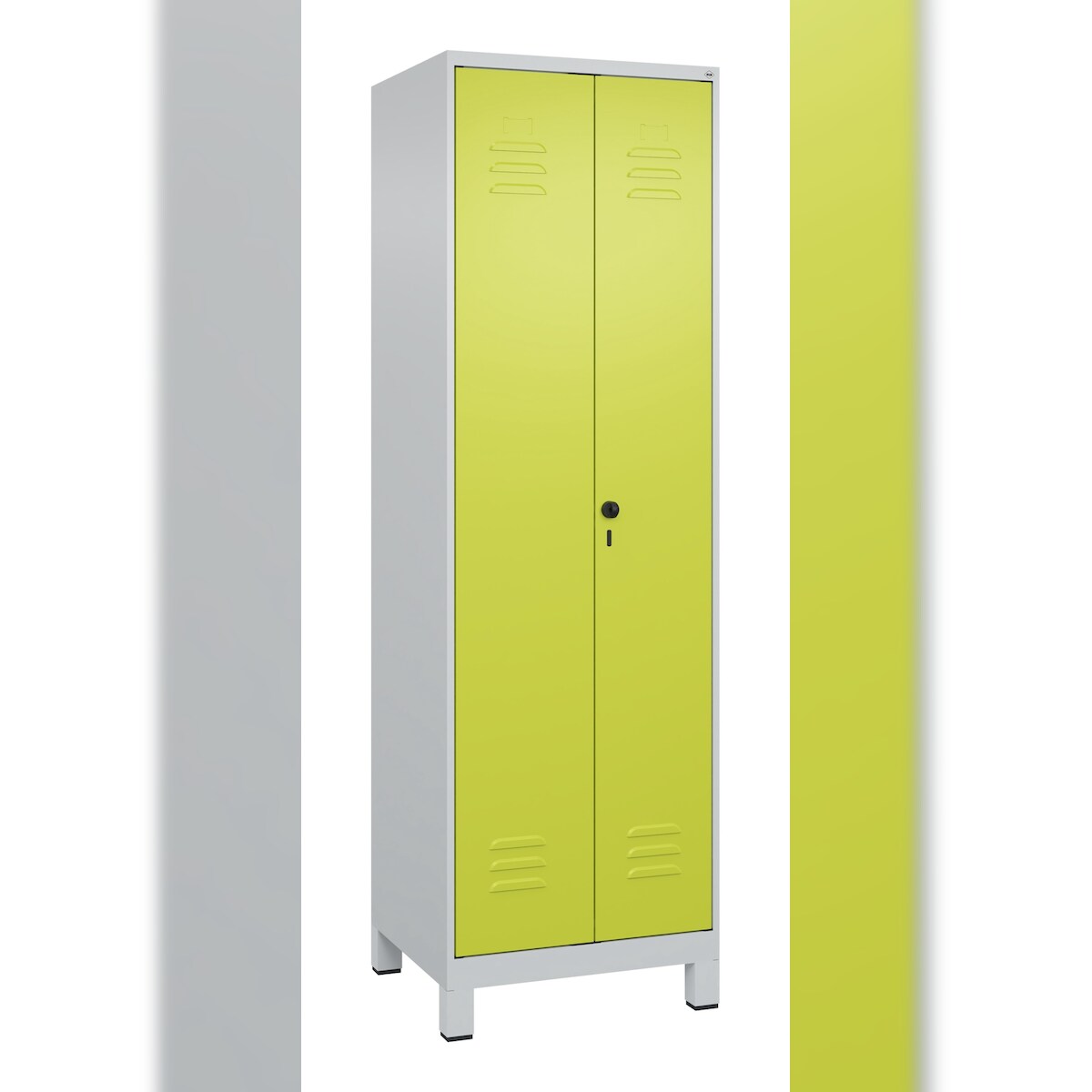C+P Aufbewahrungs Doppel-Spind Classic PLUS, Füßen, 2 Abteile, Trennwand, HxBxT 195x60x50cm, Sicherheitsdrehriegel, Hellgrau/Clowngrün von PROREGAL
