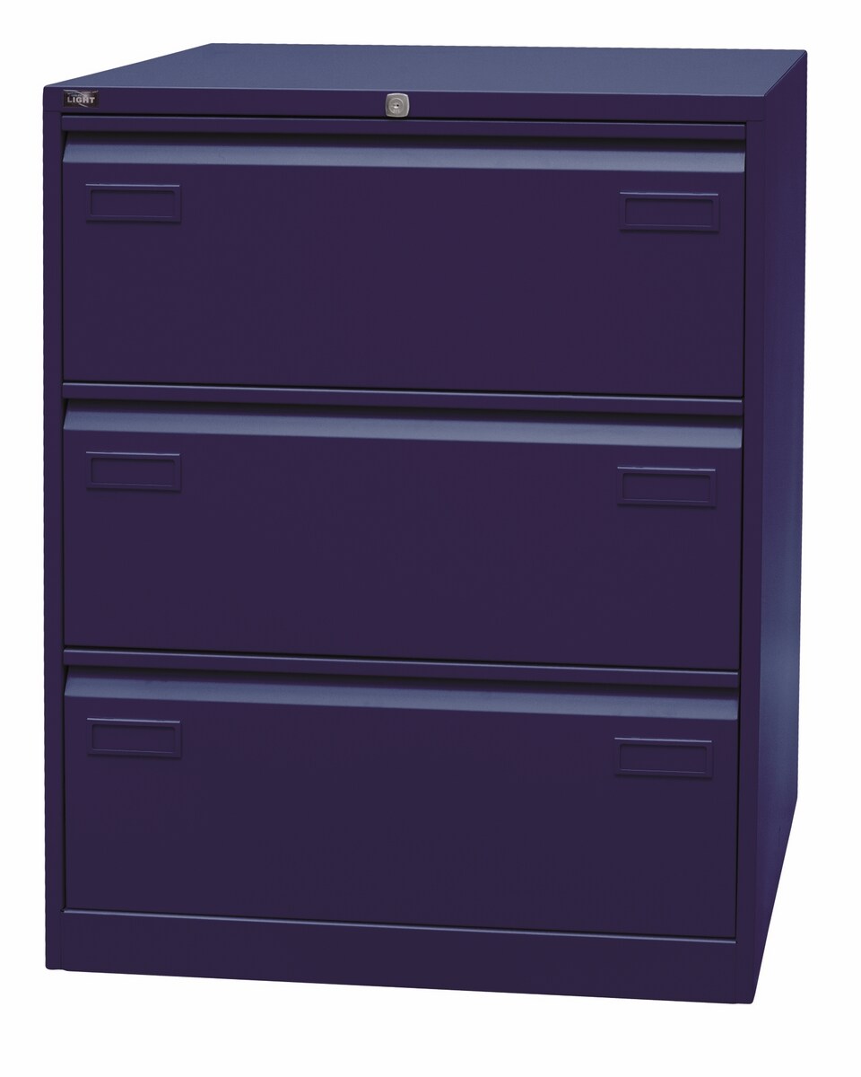 BISLEY Light Hängeregistraturschrank mit Schloss aus Metall in oxfordblau, 3 Schubladen, doppelbahnig - Hängeregisterschrank abschließbar,