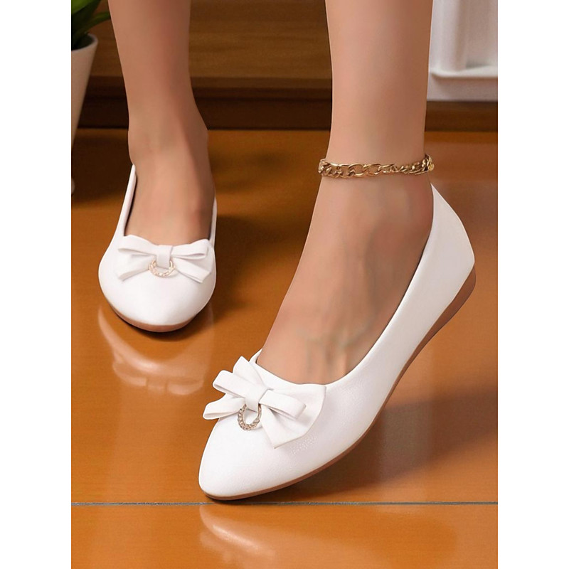 Women's Wedding Shoes Flats Ladies Shoes Valentines Gifts White Shoes Wedding Party Daily Wedding Flats Bridal Shoes Bridesmaid Shoes Rhinestone Flat Heel Pointed Toe Elegant Fashion Luxurious Satin