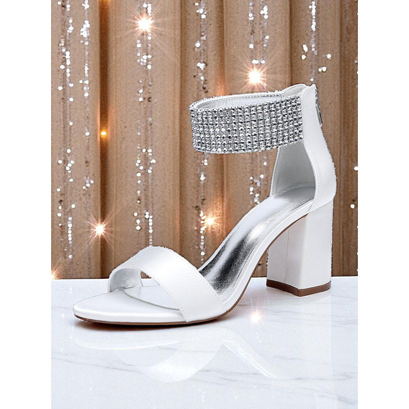 White Satin Open-Toe Bridal Heels with Crystal Detail – Elegant Wedding Shoes for Brides